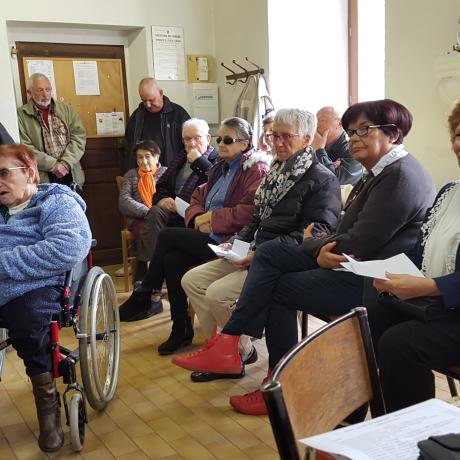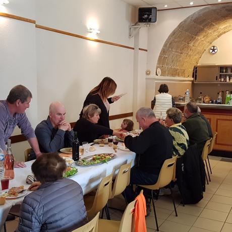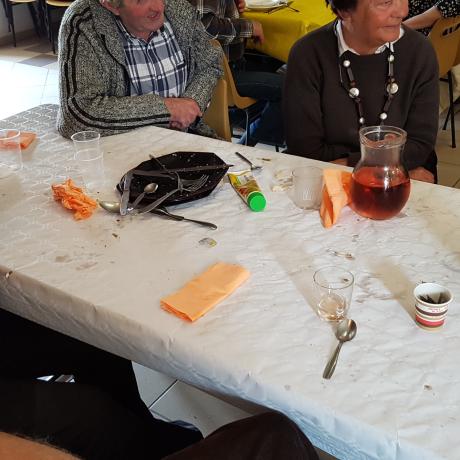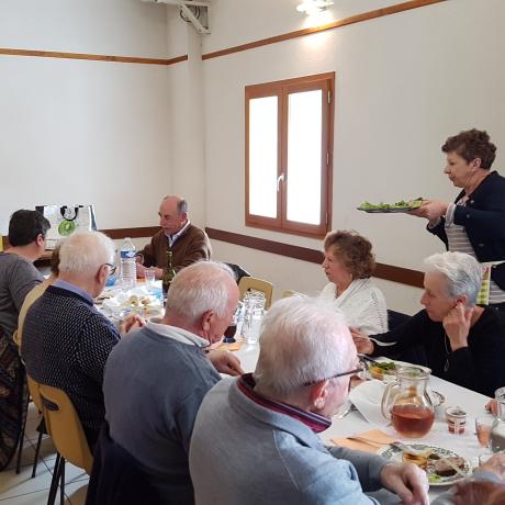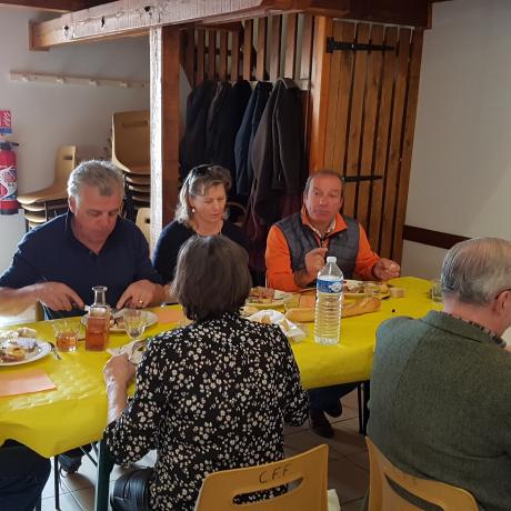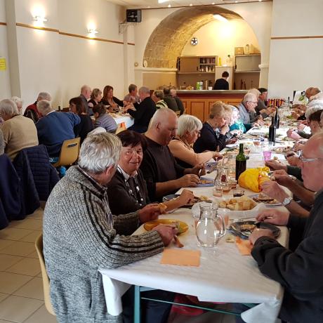 A la fin de cette Assemblée Générale, un apéritif fut servi par les Membres du CERCLE aux adhérents présents et ensuite place au délicieux repas servi à la Salle des Fêtes Communale, ceci dans une ambiance particulièrement sympathique et conviviale, cela fait extrêmement plaisir de maintenir cette situation de bon vivre dans le Village de FAUCON. ( 54 convives ).