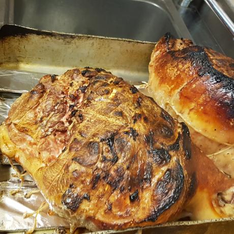 Bravo et Félicitations au Cuisinier, Marcel GIRAUD-BILLOUD, l'ancien Boucher-Charcutier du LAUZET, qui a cuit le jambon dans le Four Communal du Village, les 2 pièces de viande étaient cuites parfaitement par ce Professionnel, maintenant retraité. Merci à Lui...