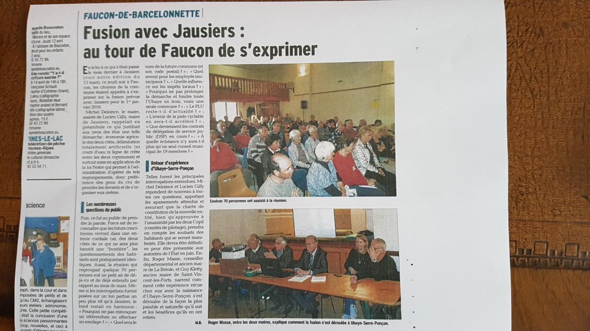 Réunion n° 5 du COPIL fusion JAUSIERS-FAUCON du 17-04-2018 de 18h à 20h :