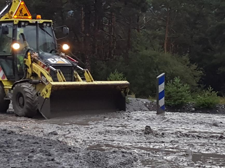 Travaux d'urgence réalisés dimanche après-midi par les 2 entreprises locales SACTP OLIVERO et EIFFAGE après accord lors de la Réunion de crise du matin avec Sophie VAGINAY Présidente de la CCVUSP, Carine ROUSSEL Sous-Préfet Barcelonnette, Jean-Michel PAYOT, Vice-président de la CCVUSP, Ronan MARIE Ingénieur GEMAPI des torrents de la Vallée de l'Ubaye, du Maire de FAUCON entouré d'une partie de l'Equipe Municipale.