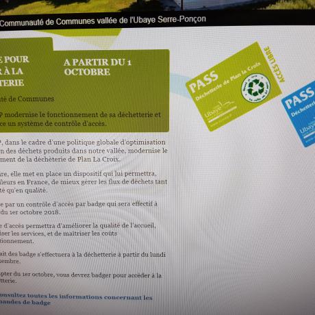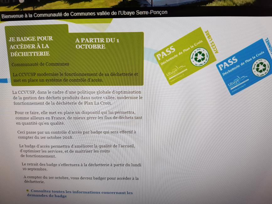 - La Communauté de Communes C.C.V.U.S.P., modernise le fonctionnement de sa déchetterie Plan la Croix située sur la Commune de Faucon de Barcelonnette et met en place un système de contrôle d'accès par badge tant pour les Particuliers que pour les Professionnels.