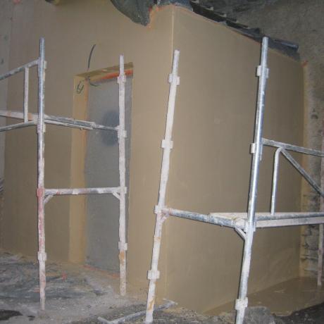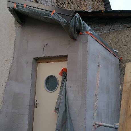 pose du 1er enduit gris sur la façade extérieur du WC,
