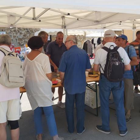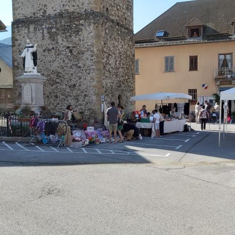 Pour sa part le CCAS de FAUCON a tenu son vide-greniers sur la place de la Mairie et sur la Place du CERCLE avec 9 exposants, qui ont démarré leur installation dès 6h30 par une température fraiche. Ensuite avec l'arrivée du soleil qui s'est maintenu toute la journée, cela a permis à chacun de vendre aux habitants de FAUCON et de la Vallée de l'Ubaye ainsi qu'à certains touristes toujours présents dans la Vallée, leurs objets divers et variés. Un grand Merci à l'ensemble de l'Equipe du CCAS de FAUCON pour son implication et sa présence pour animer ce vide-greniers désormais annuel avec la tenue également de la buvette et la vente de pâtisseries faites "maison" par certains membres.