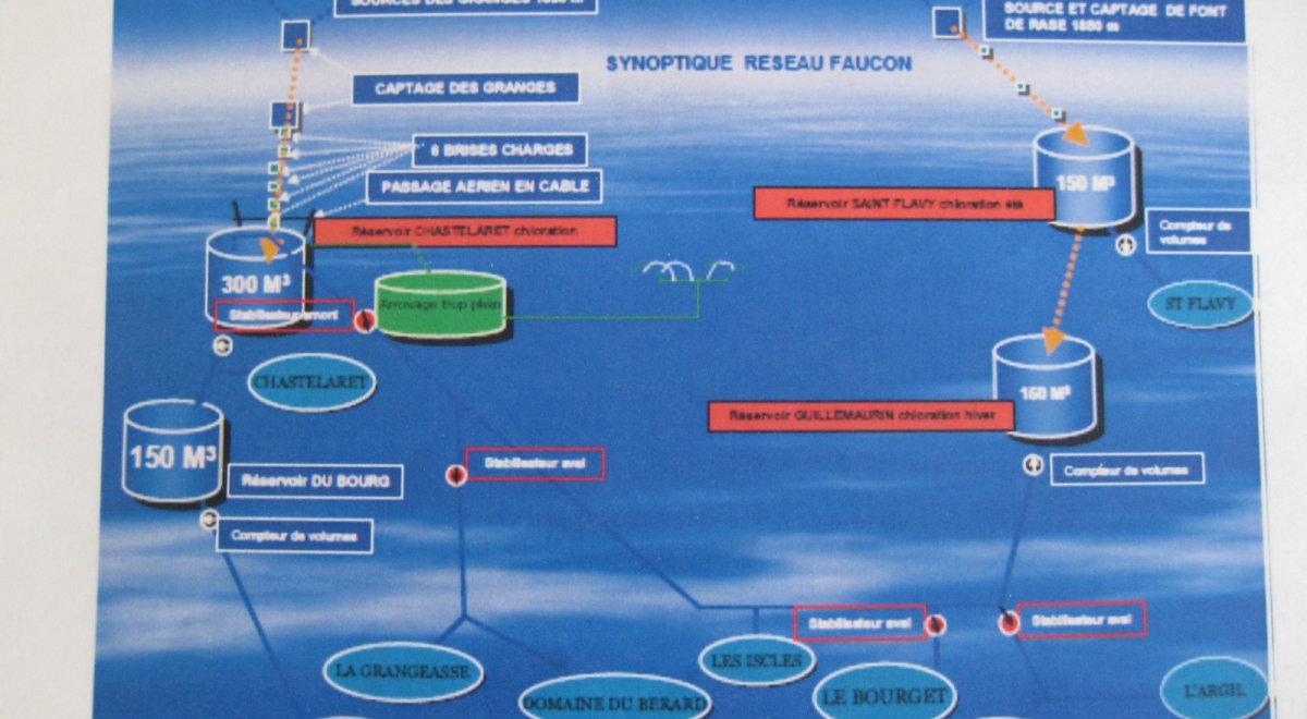 La source actuellement utilisée de FONDS DE BASE est beaucoup trop chargée en sulfates 400 au lieu d'environ 250. En vue d'une distribution d'eau moins chargée en sulfactes conformément aux souhaits de l'A.R.S, un mixage de l'ancienne source des Granges avec celle de FONDS DE BASE peramettrait de réduire ce taux de sulfates et ainsi revenir à des normes plus acceptables.